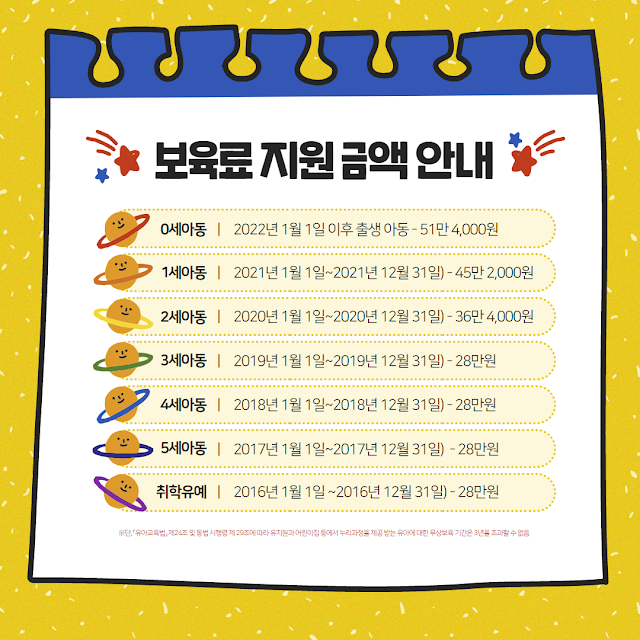 또한, 0~5세 아이 나이에 따라 폭 넓게 지원하는 보육료와 혜택을 자세하게 알아 봅시다!!